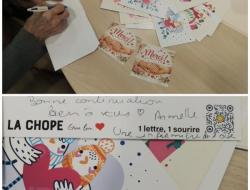 Vendredi matin, nous avons organisé un atelier d’écriture pour répondre aux jolies cartes reçues en début d’année de la part du restaurant La Chope au Touquet , dans le cadre de 1 Lettre 1 Sourire. Nous avons remercié le restaurant ainsi que toutes les personnes qui avaient laissé leur adresse afin de pouvoir leur répondre individuellement. Un joli moment de partage, de sourire et d’écriture.