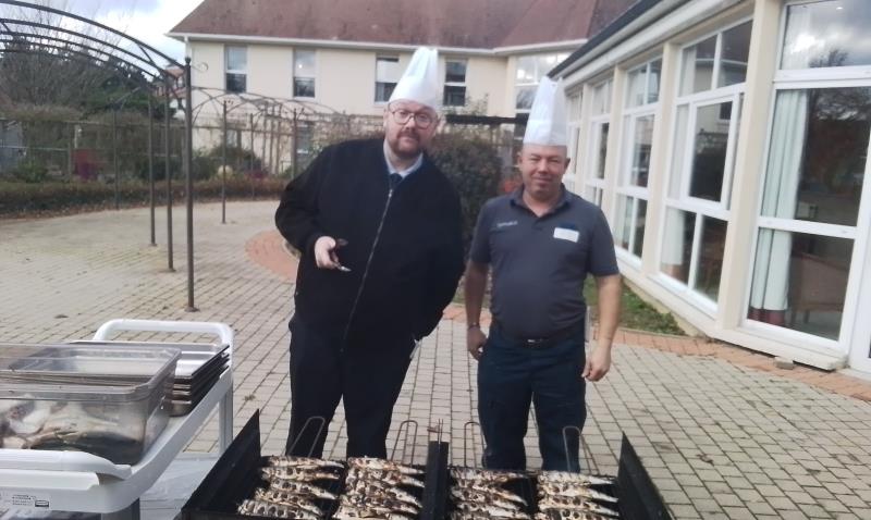 A cette occasion, une table d'hôtes a été organisée pour le plus grand plaisir des résidents. Je vous laisse admirer nos 2 cuisiniers d'un jour.
