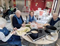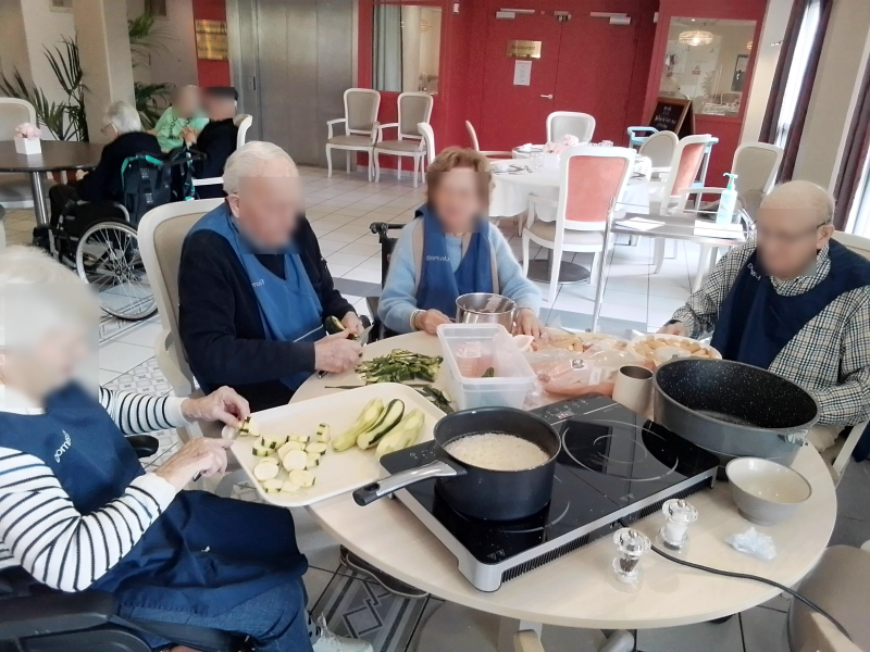 Une table d'hôte à été organisée et cuisinée par quelques résidents et nous avons partagé ce bon repas ...salade aux crevettes, marmite de poissons avec son gratin de courgettes et pour finir une Charlotte aux fruits... très bon moment convivial ..tous se sont régalés.